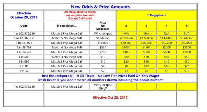 2017年,超级百万彩票曾做出最新的规则变动,摇奖球数量调整为白球号码数量由75个减少至70个,“超级”号码由20个增加至25个。经此调整后: