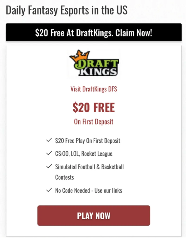 对于国外各大博彩网站来说,电竞博彩已经成了他们在疫情阶段的一个“逃生通道”。以美国大型博彩公司DraftKings为例,DraftKings在疫情期间特地在网页上为目前最流行的两个电竞项目,CS:GO和英雄联盟开通了独立入口,让这两个电竞项目与NBA、NFL等老牌传统体育博彩项目并驾齐驱;除此之外,DraftKings还为电竞博彩项目设置了大量优惠政策,通常采取向新用户赠送赌金的方式,赠送的金额通常在10美元至20美元不等。用户可以直接登录网站领取赌金,这些赌金可以用来在DraftKings上的英雄联盟、CS:GO和火箭联盟(Rocket League)盘口中下注。