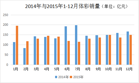 去年体彩有8个月比2014年销量低