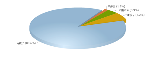 在去年年末,《新浪彩通》发起了一项名为“2015年您买了多少钱彩票?挣了亏了?”的调查,结果显示,88.6%网友亏钱,投入1万元以上的占了参与调查网友的44.4%。
