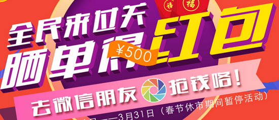 爱波网在2月1日至3月31日期间推出了“全民来过关,晒单得红包”活动,玩家需要下载“彩乐瀑”APP,在该APP上购买含有“非足球”场次的北单胜负过关玩法,无论中奖与否,只要晒单就可以得到数目不等的红包。