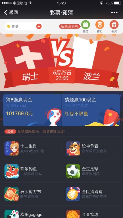 下面请看几个例子,作为腾讯旗下目前最具价值的产品——X信,相信是使用频率最高的手机APP之一。但或许多数人都没有注意过,只要打开手机X信,进入X信钱包内的彩票一栏,即会出现“彩票·竞猜”的画面,而当中投注种类丰富,包括了双色球、大乐透、福彩3D、足球竞猜、篮球竞猜等等游戏,甚至钓鱼、十二生肖和猜测股市涨跌等都在游戏范围之内,用户可以通过“金豆”这一虚拟货币进行竞猜投注。