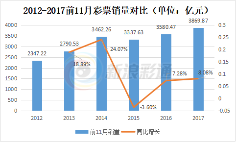 2017年12月22日,财政部公布前11月我国彩票销量数据。