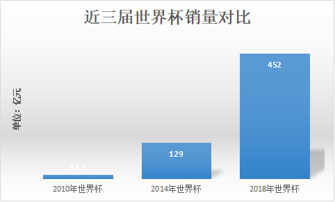 俄罗斯世界杯举行的几周内,竞彩累计销量达到452.41亿元,相比上一届世界杯期间竞彩总销量129.21亿元,增长超过一倍。