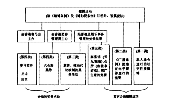 香港现有合法奖券游戏活动囊括,赛马奖券、足智彩(足球彩票)、六合彩游戏以及其他奖券活动等多种。
